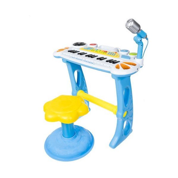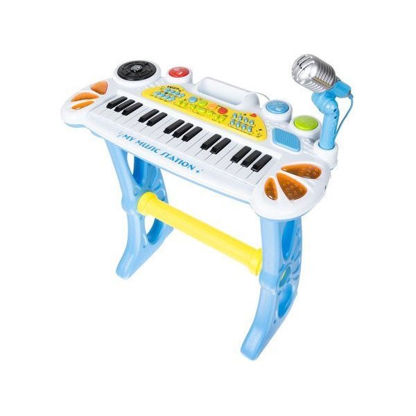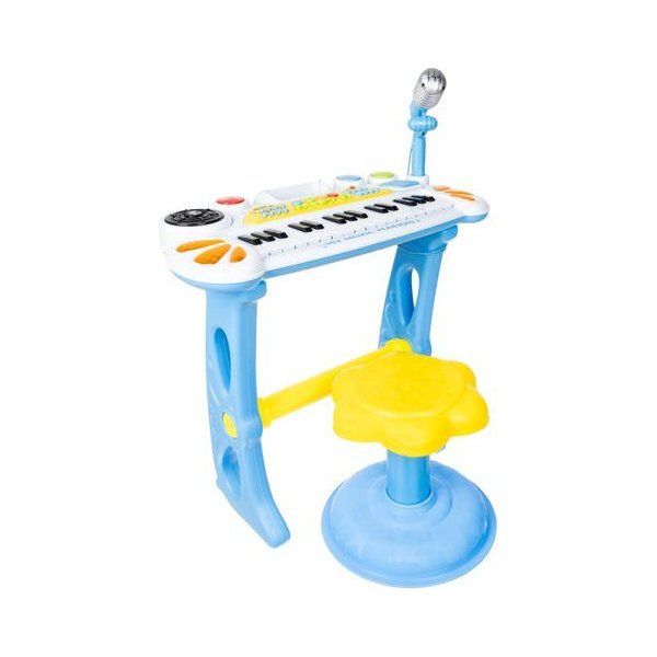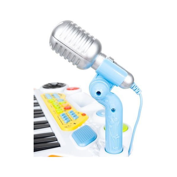 Wielofunkcyjne organy, które spodobają się małemu muzykantowi. Do zestawu dołączony został mikrofon na stojaku oraz krzesełko, aby maluch mógł wygodnie się rozsiąść. Dzięki temu dziecko nie tylko zagra, ale również będzie mógł wziąć udział w karaoke razem z towarzyszami. Keyboard pozwala umożliwia również próbowania swoich sił jako perkusisty. Posiada dużo podkładów oraz melodyjek. Atrakcją będą również efekty świetlne, które z pewnością zachęcą dzieci do skorzystania z organów. Dodatkowo można do nich podłączyć telefon lub odtwarzacz MP3, które umożliwią puszczenie ulubionej piosenki.