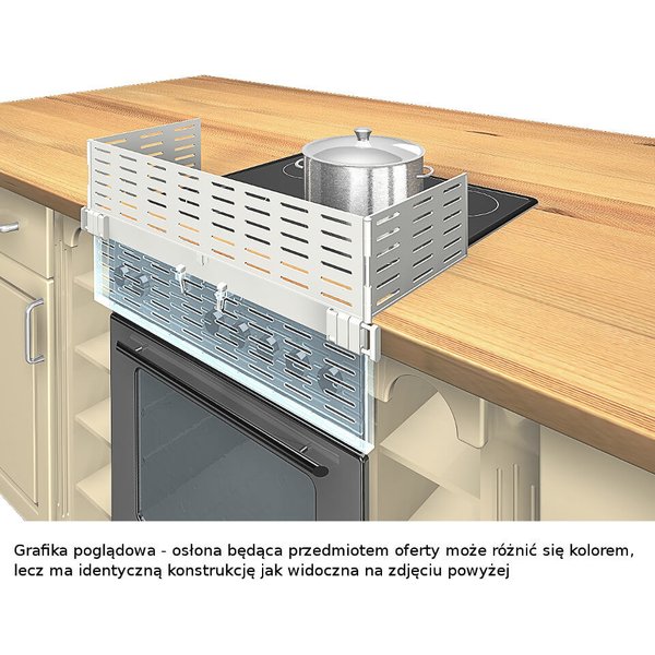 Osłona Reer to produkt uniemożliwiający dzieciom dostęp do płyty grzewczej lub palników gazowych. Główny panel uchroni dziecko przed poparzeniem się płytą lub garnkami, które na niej stoją, zaś drugi osłania kurki, by dziecko nie mogło ich przekręcić. Posiada również boczne panele, które zabezpieczają płytę grzewczą po obu bokach. Panel można uchylić, gdy mamy taką potrzebę.