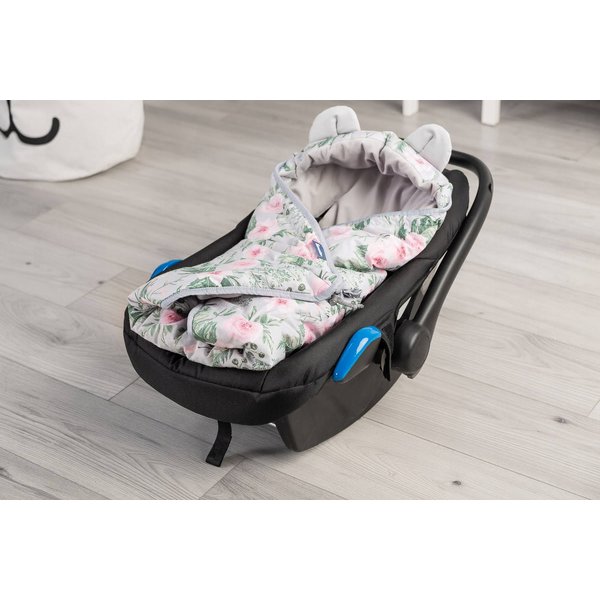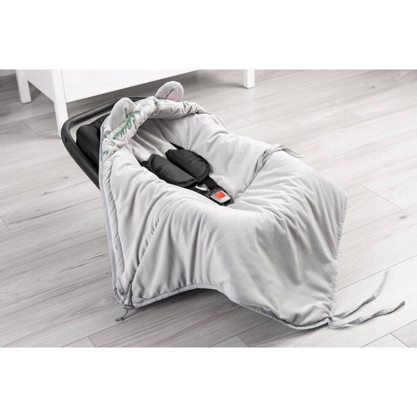 Otulacz do fotelika przyda się z pewnością w chłodniejsze dni. Pozwoli zastąpić kurtkę czy kombinezon podczas dłuższej trasy. Posiada otwory na 3 punktowe pasy co sprawia, że jest bardzo funkcjonalny i nie ma konieczności rozpinania pasów, aby odkryć maluszka. Posiada również dodatkowy kapturek, który ochroni małą główkę przed chłodem. Wykonany został z 100% bawełny, a wewnątrz wyłożony jest delikatną tkaniną velvet.