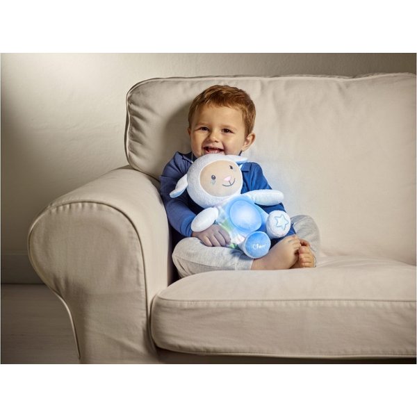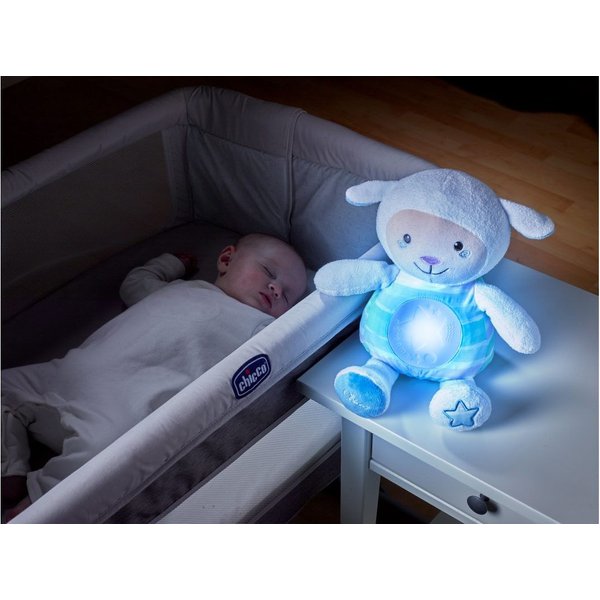 Owieczka z projektrem marki Chicco została specjalnie zaprojektowana, aby ułatwić zasypianie każdemu niemowlakowi. Jej brzuszek kryje niezwykłe atrakcje - po naciśnięciu puszcza melodyjki i pokazuje efekty świetlne, które będą towarzyszyć dziecku w drodze do krainy snu! Pomogą one maluszkowi się zrelaksować i poczuć bezpiecznie, a dyskretne i spokojne melodie nie będą go rozpraszać.