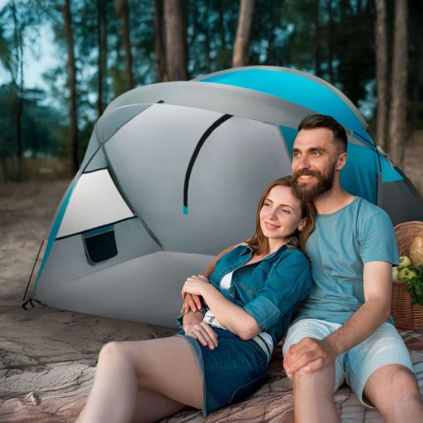 Namiot ma optymalne wymiary, by bez trudu zabrać go ze sobą na każdą plażę. Jego wymiary są optymalne, by bez trudu zmieścić grono znajomych lub rodzinę. Namiot jest bardzo praktyczny, co wyniki z kieszonek wewnętrznych i zewnętrznych. Wentylacja z siatki zapewnia swobodny przepływ powietrza.
