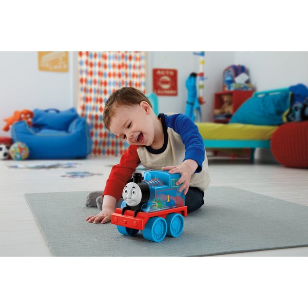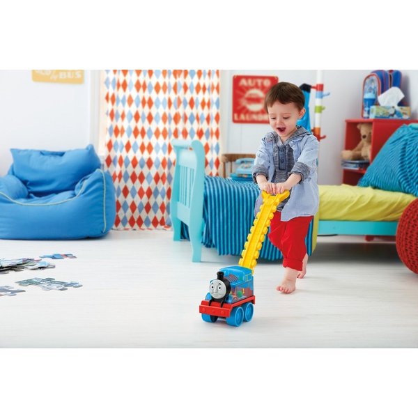 Gdy maluszkowi znudzi się chodzenie z kijkiem lokomotywkę można odczepić i zacząć zabawę w pozycji siedzącej. Kółka Tomka kręcą się, maluch może gonić uciekający pojazd na czworaka!