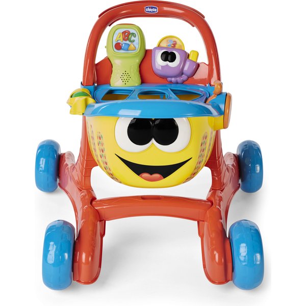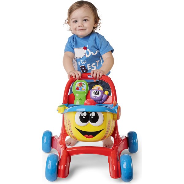 Kolorowy pchacz w kształcie wesołego wózka na zakupy marki Chicco to świetny towarzysz pierwszych kroków Twojego dzielnego maluszka.