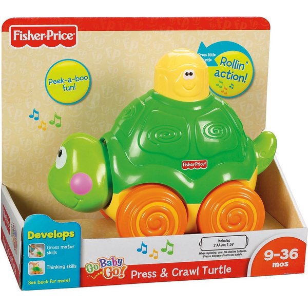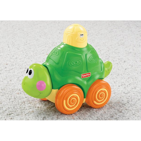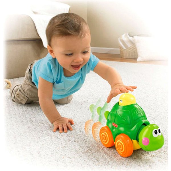 Żółwik ucieka, zachęcając dziecko do raczkowania, aby go dogonić i złapać. Wystarczy nacisnąć na główkę żółwika, aby ten ruszył w drogę grając wesołą melodie.