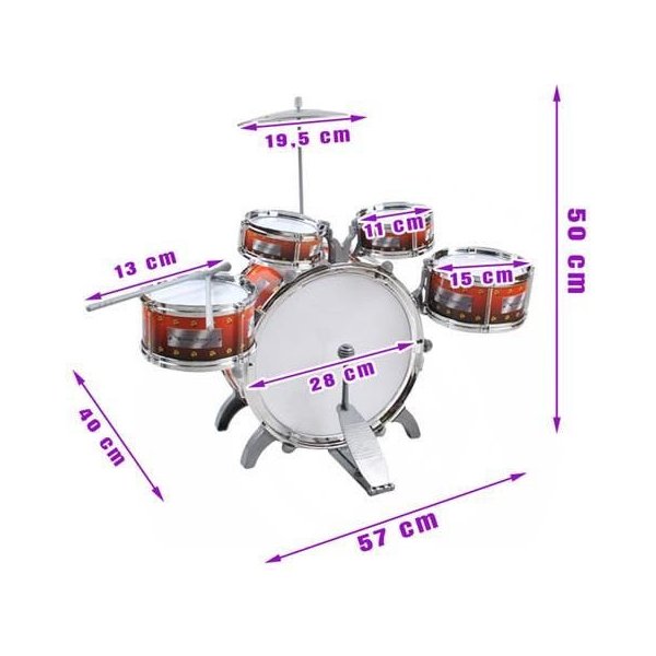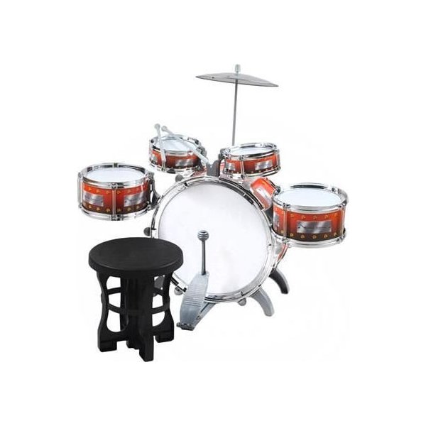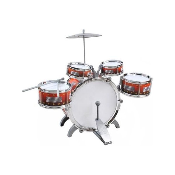 - 5 bębnów: 1 duży bęben basowy z pedałem nożnym, 2 średnie i 2 małe bębny