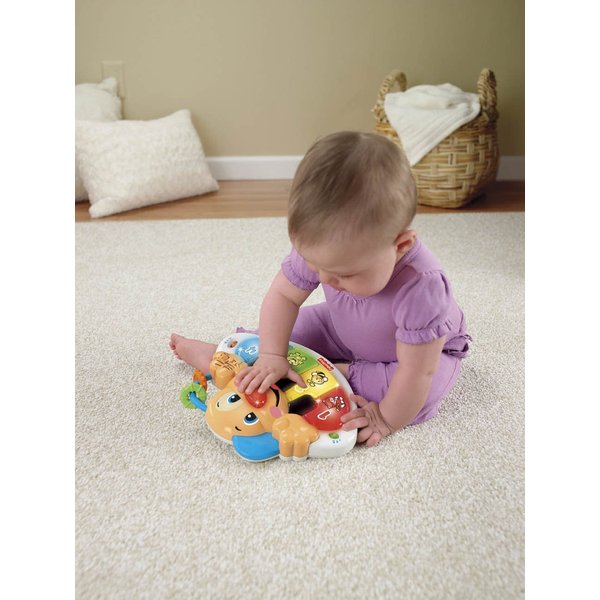 Pianinko ma 4 świecące klawisze, a szczeniaczek świecący nosek. Wykorzystując 3 tryby interaktywnej zabawy (tryb nauki, muzyki lub dwujęzyczny) dziecko może nauczyć się kolorów, liczb, nazw zwierząt i ich odgłosów, pozdrowień oraz pierwszych słów po polsku i po angielsku. Naciskając klawisze, usłyszy dźwięki pianina, nazwy kolorów i liczby po polsku i po angielsku. Każde dziecko może także "skomponować" własną piosenkę, naciskając podświetlane klawisze. Naciśnij nosek szczeniaczka - usłyszysz piosenkę, a nosek zaświeci! Słuchając piosenek, dziecko polubi naukę ze swoim muzykalnym pieskiem i jego pianinkiem. Jest ono niewielkie i poręczne. Można je wszędzie ze sobą zabrać. Piosenki i teksty po polsku oraz po angielsku.