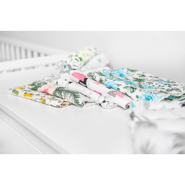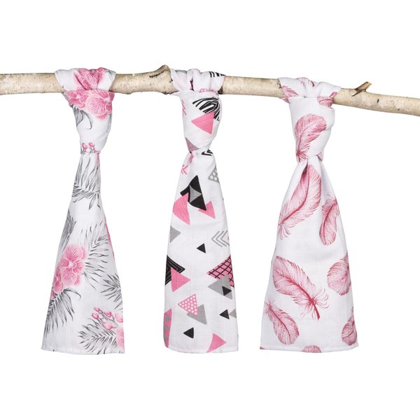 Pieluszki muślinowe w nowoczesnym, modnym wzorze zachwycą każdą stylową mamę. Będą idealną alternatywą dla tradycyjnych tetrowych pieluch. Doskonale miękkie pieluchy wykonane są z bawełny muślinowej, która jest delikatna i bezpieczna dla skóry dziecka.
