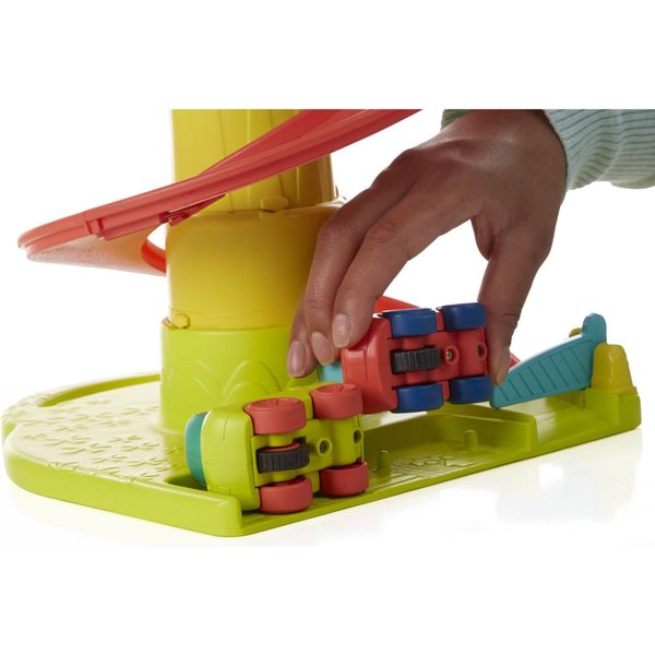 Tor idealny dla najmłodszych dzieci, które właśnie odkryły miłość do samochodzików. Po torze mkną małe autka z uśmiechniętymi buźkami, pchane przez dziecko. Pojazdy można puścić ze zjeżdżalni, aby wesoło zjechały i pomknęły przed siebie. Jest też szlaban, który można podnieść!
