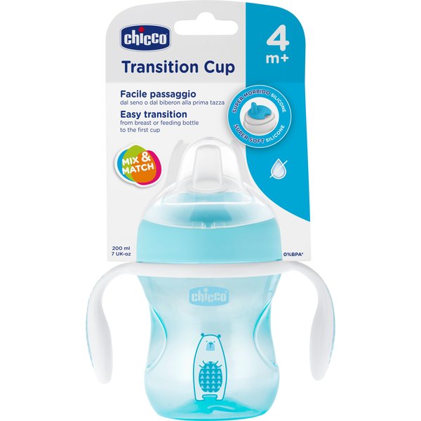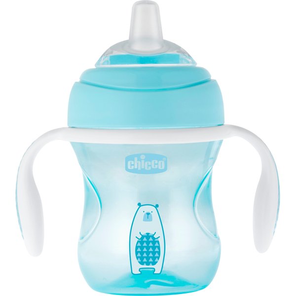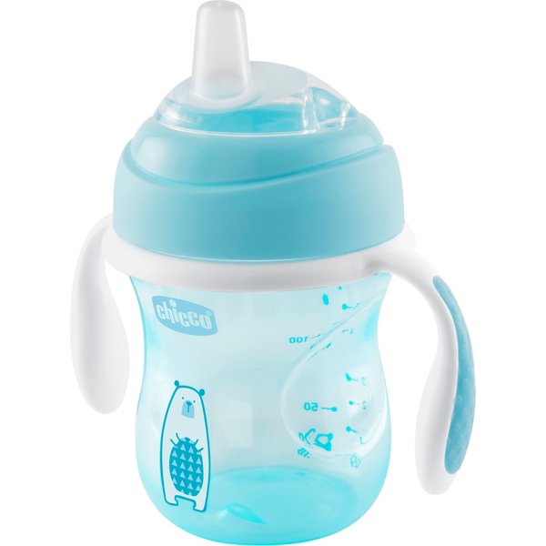 Kubek treningowy Chicco z miękkim ustnikiem dla dzieci od 4 miesiąca życia.