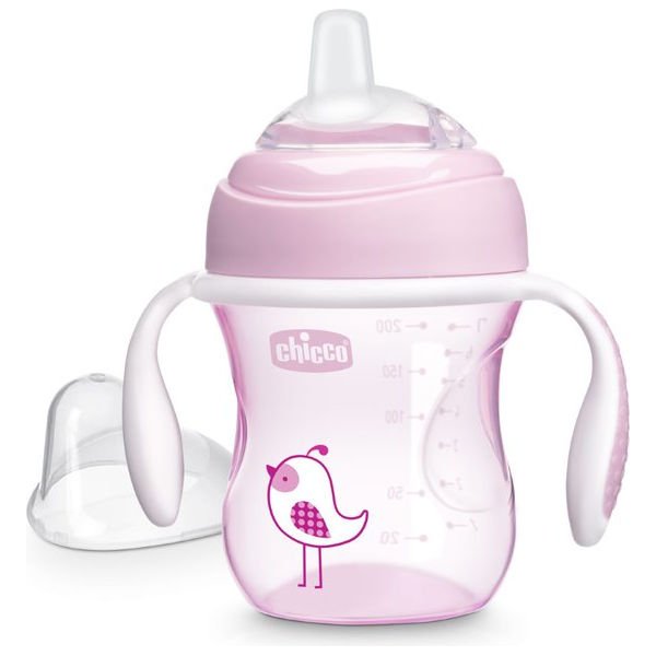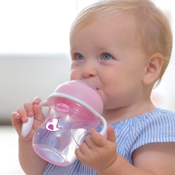 Kubek treningowy Chicco z miękkim ustnikiem dla dzieci od 4 miesiąca życia to doskonały kubek dla dzieci rozpoczynających naukę samodzielnego picia. Specjalnie wyprofilowany kształt i wygodne, szerokie uchwyty, ułatwiają maluszkowi utrzymanie go w rączkach. Miękki, silikonowy ustnik uchroni przed podrażnieniami dziąsełek. Szeroka szyjka pozwala na wygodne napełnienie i mycie, a szczelna osłonka chroni ustnik przed zabrudzeniem. Podwójny zawór antykolkowy zmniejsza ryzyko wystąpienia u dziecka kolki.