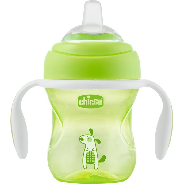 Kubek treningowy Chicco z miękkim ustnikiem dla dzieci od 4 miesiąca życia.