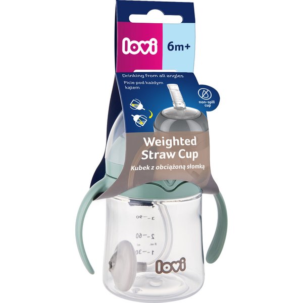 Pierwszy kubek z obciążoną słomką 150ml Lovi to idealny wybór dla dzieci powyżej 6 miesiąca życia, które podejmują pierwsze próby picia ze słomki. Dzięki delikatnej, giętkiej słomce o odpowiedniej średnicy i długości, kubek nie podrażnia podniebienia dziecka. Bezpieczny odważnik obciąża słomkę i podąża za napojem pozwalając na swobodne picie pod każdym kątem. Zdejmowana pokrywka ułatwia picie z każdej strony, a niewielki rozmiar kubka i uchwyty dopasowane do małych rączek sprawiają, że jest to idealny kubek dla najmłodszych, którzy uczą się pić ze słomki. Wygodne i bezpieczne rozwiązanie dla rodziców, którzy chcą wsparć swoje dziecko w nauce picia.