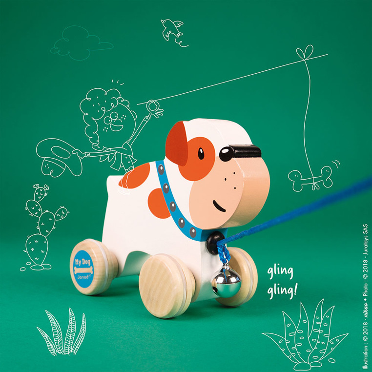 Piesek drewniany do ciągnięcia Janod