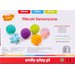 Sześć piłeczek w różnych kolorach i fakturach to mnóstwo radości z odkrywania różnorodnych struktur, wspaniała okazja do nauki chwytania, toczenia po podłodze, inspiracja do raczkowania, a jeśli maluszek jest zestresowany - ciekawy sposób na relaks poprzez masaż miękką piłeczką. Zabawki pozytywnie wpływają na rozwój wszystkich zmysłów maluszka, rozwijając jego sprawność ruchową. Przydają się także w kąpieli, urozmaicając mu codzienne zabiegi higieniczne. Piłeczki zostały wykonane z całkowicie bezpiecznych dla małego dziecka materiałów o dużej trwałości.