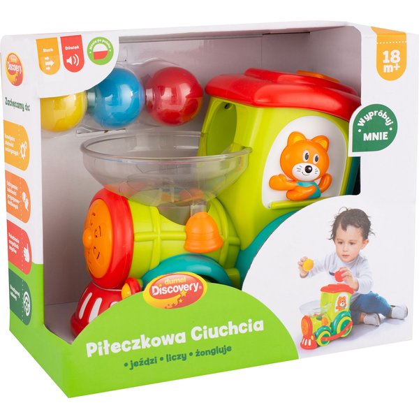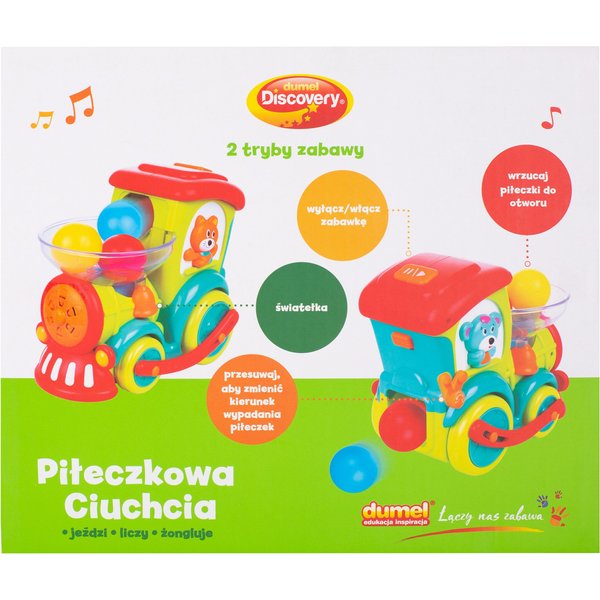 Kolorowa ciuchcia, która kryje w sobie mnóstwo niespodzianek. Piłeczki znajdujące się w zestawie w połączeniu z ciuchcią potrafią naprawdę wiele. Zabawka działa w dwóch trybach: statycznym (ciuchcia nie porusza się) oraz dynamicznym (ciuchcia jeździ w różnych kierunkach).