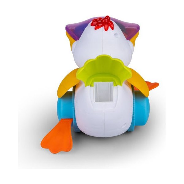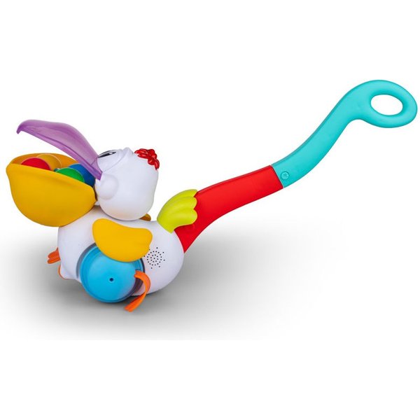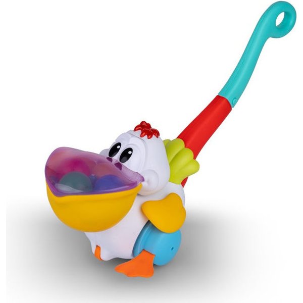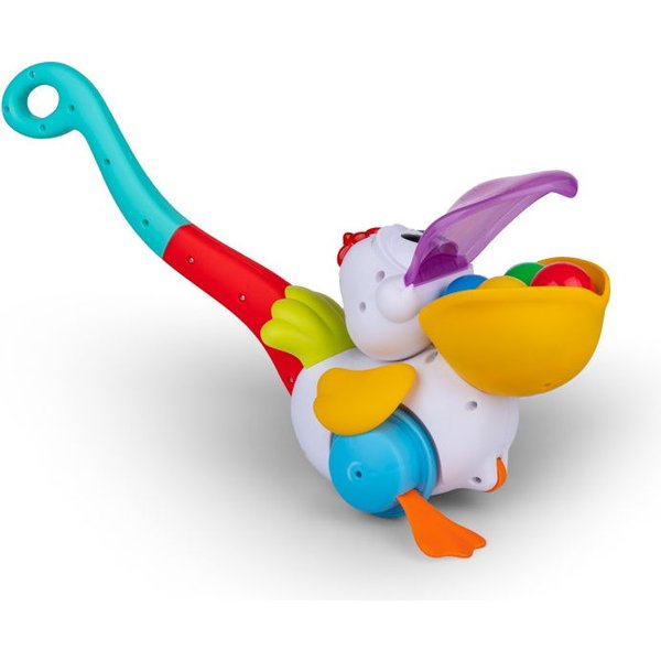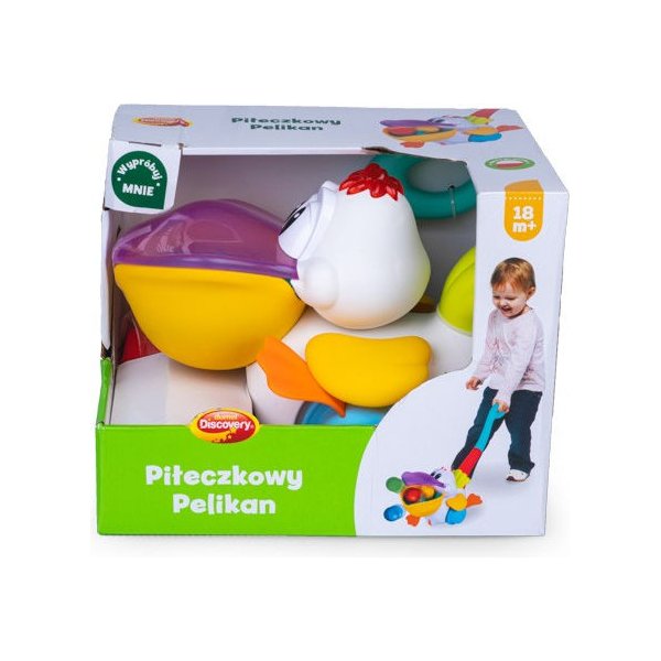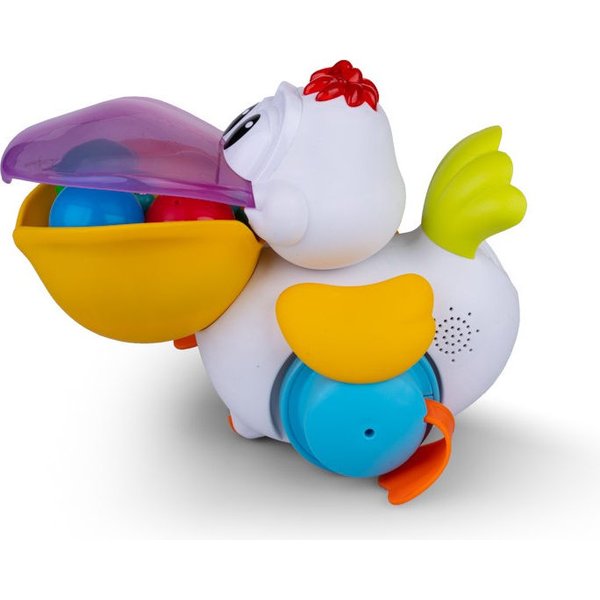 Wesoły Pelikan od Dumel to doskonały towarzysz, który z chęcią spędzi czas na zabawie z dzieckiem. Aby zabawa była pełna atrakcji nauczył się kilku piosenek po polsku. Ten uroczy ptaszek posiada wielki dziób w którym pomieści kolorowe piłeczki. Gdy zaczniemy prowadzić go, wyrzuci piłeczki, a maluch będzie musiał wrzucić je z powrotem. To pozwoli nauczyć dziecko utrzymywania porządku oraz celności.