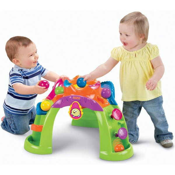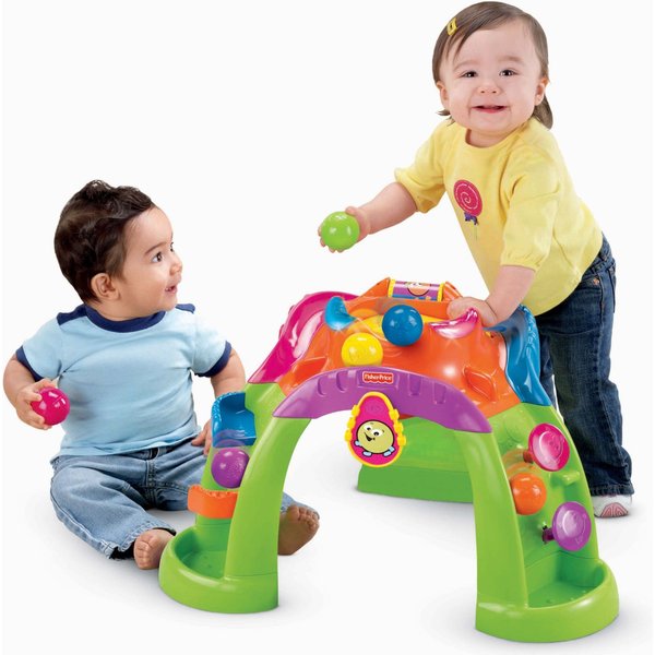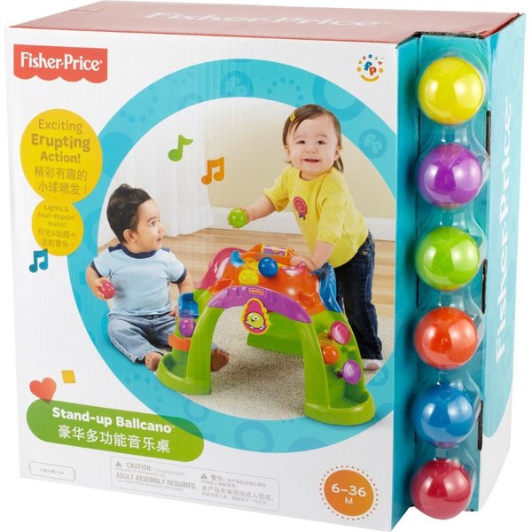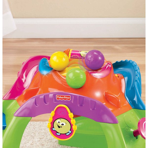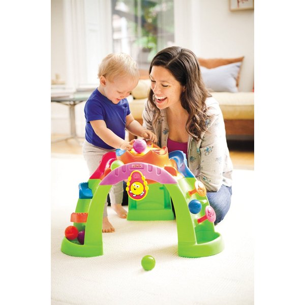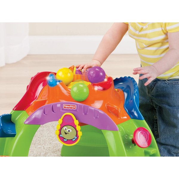 Światełka, muzyka, dźwięki i ruch zachęcają dzieci do aktywnej zabawy i wywołują wybuchy śmiechu! Wulkan wyrzuca z siebie piłeczki, przykuwając uwagę dziecka i zachęcając je do stawania na nogi. Maluszek będzie chciał wciąż wrzucać piłeczki do środka i patrzeć, jak wyskakują i toczą się w dół po zjeżdżalniach, a zabawa jest pełna niespodzianek. Uderz w wałeczek, aby wywołać erupcję!