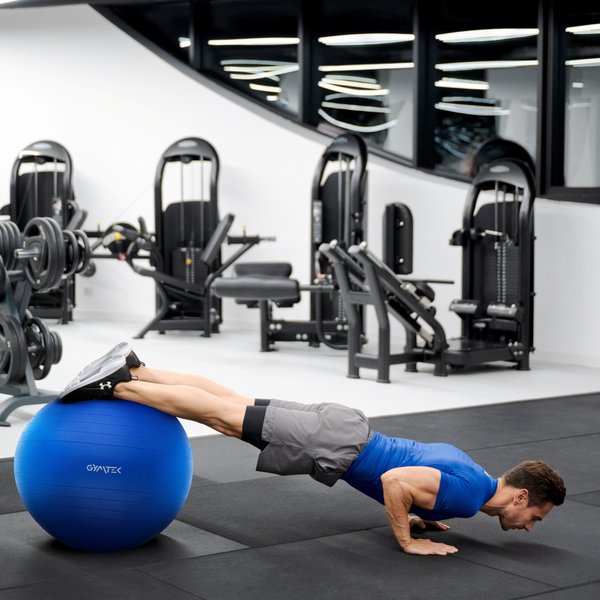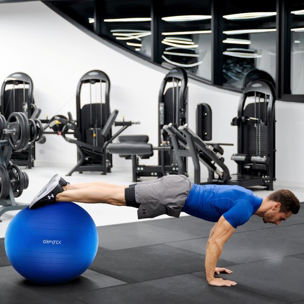 Piłka gimnastyczna od Gymtek, którą teraz może mieć każdy w swoim domu jako pomoc przy ćwiczeniach rozciągających.