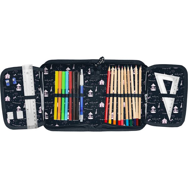 Produkt ten posiada niezbędne artykuły piśmiennicze, dzięki czemu nie musisz tracić czas na ich samodzielne kompletowanie. Kolorowa seria piórników marki Paso spodoba się każdemu dziecku. Dwie praktyczne klapki posiadają specjalne gumki, utrzymujące w ryzach kredki, ołówek, mazaki i inne elementy, aby nie ulegały uszkodzeniu.