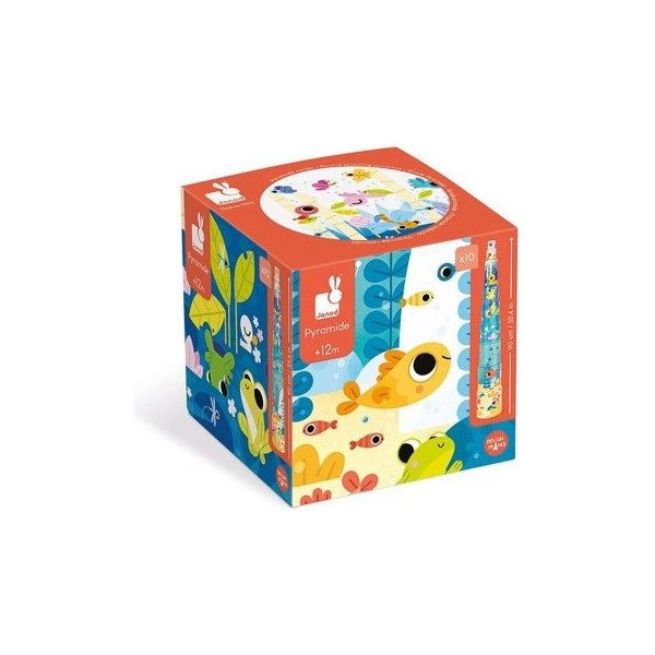 Piramida od marki Janod to zabawka, która z pewnością zachwyci małe dzieci. Można nimi bawić się na wiele sposobów, nie tylko układając z niej wierze. Są one wykonane z wysokiej jakości kartonu co oznacza, że są odporne na budowanie i burzenie budowli. Po skończonej zabawie klocki można schować jeden w drugi. Pozwoli to zaoszczędzić miejsce i utrzymać porządek. Każda z 10 części posiada piękne ilustracje, które z pewnością zachwycą maluszka i pozwolą na wymyślanie przeróżnych historii co pobudzi jego wyobraźnię. Oprócz tego każdy klocek na górze jest ponumerowany od 1 do 10 co przy okazji zabawy pozwoli dziecku przyswoić cyferki i liczenie do 10. Piramidka zapakowana jest w ozdobne pudełko. Idealnie nada się jako prezent na pierwsze urodziny.