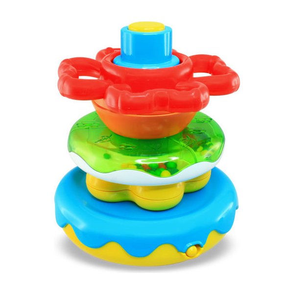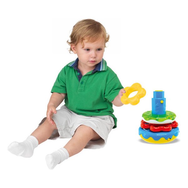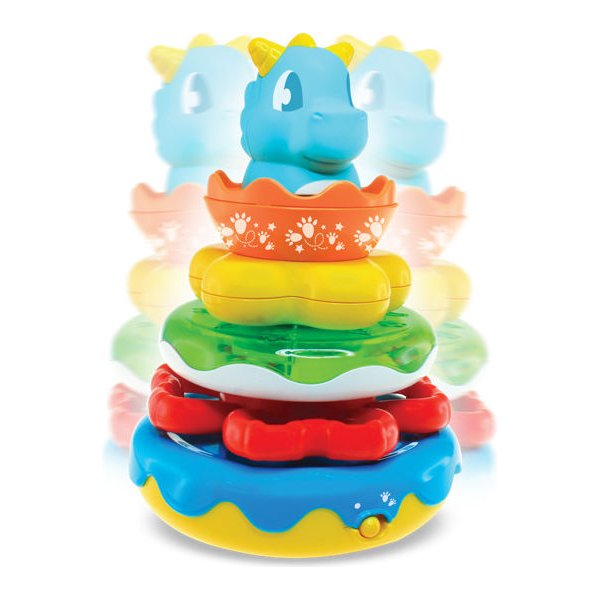 Przeuroczy dinozaur od Dumel ze swoją kolorową piramidką zaprasza do zabawy! Wyposażony został w cztery pierścienie z którego jeden wydaje grzechoczące odgłosy! Maluszek będzie ćwiczył swoją zręczność przekładając pierścienie. Ich różne barwy pozwolą na przyswojenie nazw kolorów. Zabawka posiada również magiczny przełącznik, który uruchomi wesołe melodie.