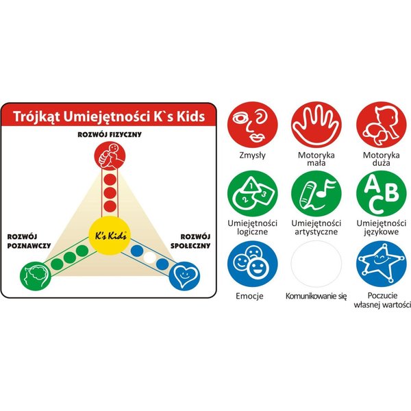 - dziecko uczy się rozpoznawać kolory, zwierzątka, liczby, figury geometryczne