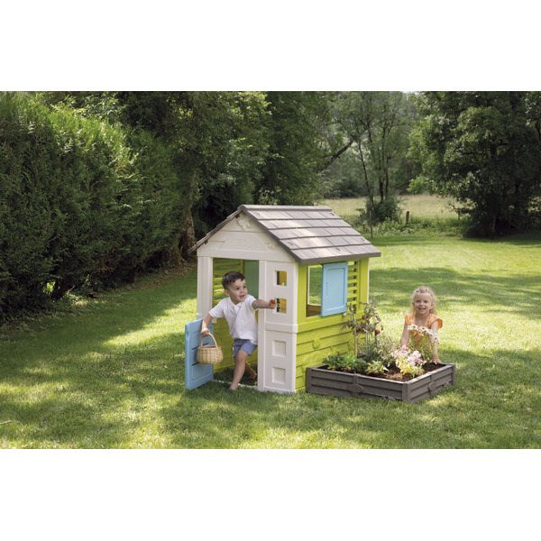 Domek ogrodowy marki Smoby to wspaniałe rozwiązanie dla dzieci, które uwielbiają spędzać czas na świeżym powietrzu. Ten designerski dom posiada aż 2 okna i 2 przesuwane okiennice, które można otwierać i zamykać, dostarczając przy tym dzieciom wiele zabawy. Na przodzie znajdują się drzwi oraz małe okienko z tyłu. W zestawie z domkiem znajduje się piaskownica, która może służyć również jako skrzynia na warzywa, owoce lub kwiaty. Do piaskownicy można wsypać 100 kg piasku lub 70 kg gleby pod uprawy. Produkt charakteryzuje się wysoką jakością wykonania, a także zawiera powłokę ANTI-UV chroniącą kolory przed blaknięciem. Dzieci od 2 lat będą zachwycone tym pięknym domkiem!