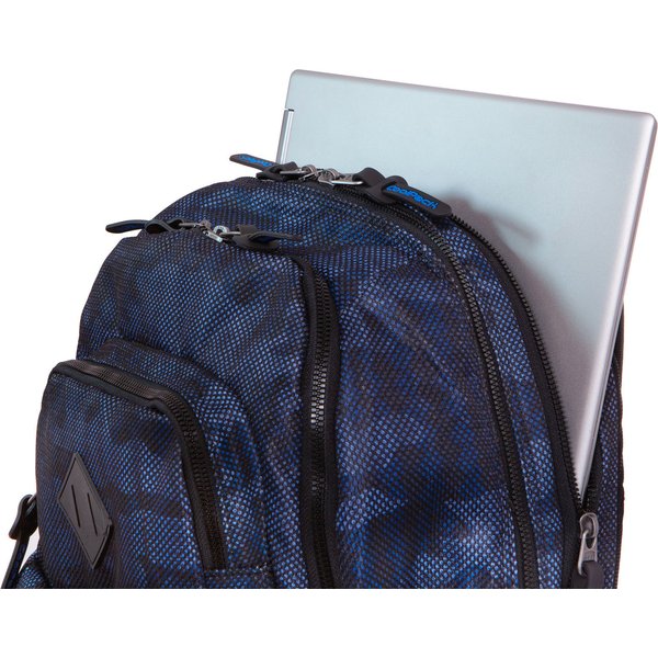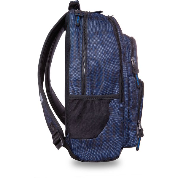 Duża pojemność plecaka podzielonego na dwie komory główne sprawia, że bez problemu zmieści się tam wiele rzeczy. Jest bardzo komfortowy w noszeniu dzięki usztywnionym plecom, wyściełanym szelkom z regulacją oraz wzmocnionemu spodowi. Boczna kieszonka na bidon lub butelkę z wodą może znaleźć także inne zastosowania. W środku plecaka znajduje się praktyczny organizer na drobiazgi, w tym przywieszka na klucze oraz specjalna przegroda na laptop, chroniąca go przed uszkodzeniami. Na zewnątrz umieszczono dwie zamykane na suwak kieszonki, w której zmieści się drugie śniadanie oraz inne drobiazgi. Plecak został uszyty z trwałego i odpornego na wodę materiału poliestrowego, dzięki czemu możesz cię nim cieszyć przez kilka sezonów.