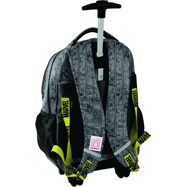 Plecak na kółkach od Paso z oryginalnym wzorem! Z takim ekwipunkiem dziecko chętnie będzie chodziło do szkoły. Posiada on specjalną budowę, która umożliwi odpowiednią organizację. Wyposażony w dwie duże komory zapinane na zamek, które pozwolą bezpiecznie przechować zawartość. Dodatkowe kieszenie znajdują się na froncie oraz po bokach - te wykonane są z siatki. Boczne kieszonki bez problemu przechowają butelkę czy bidon na napój. Wyposażony został w kółka z PCV, które są wytrzymałe i chronią dno plecaka przez uszkodzeniem. Miękka, teleskopowa rączka pozwoli dostosować jej wysokość do wzrostu dziecka. Plecak posiada również chowany stelaż ze specjalną osłonką. Całość uszyta została z materiału wodoodpornego.