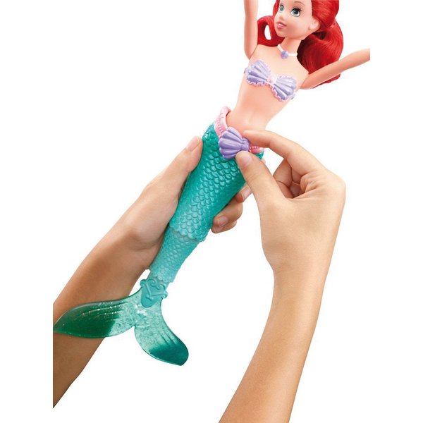 Każda zabawa z nią będzie morską przygodą. Wystarczy nakręcić muszelkę na pasku Arielki, a jej ogon zacznie się ruszać - lalka będzie pływać w wodzie prawie tak jak w filmie! Syrenka na prawdę rusza ogonem!