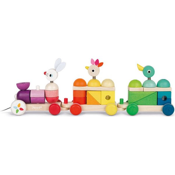 Pociąg z klockami i zwierzątkami do ciągnięcia Janod