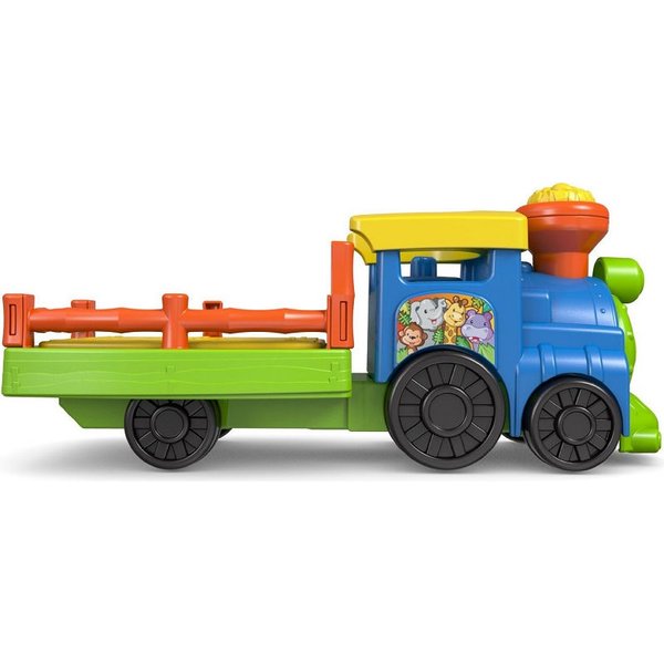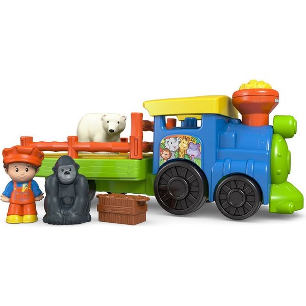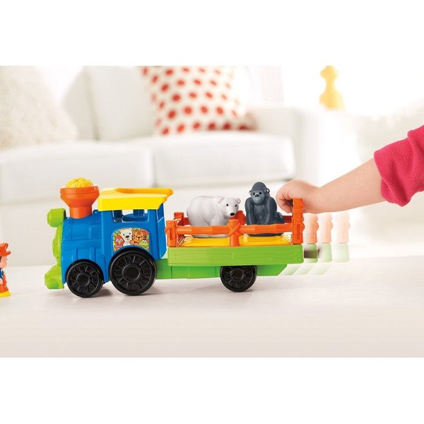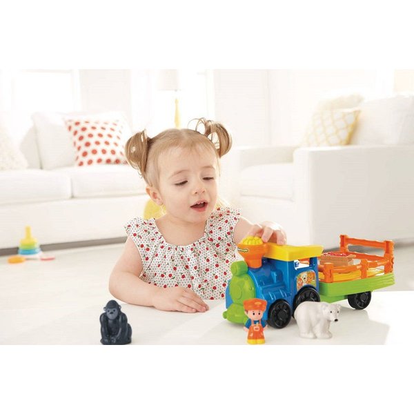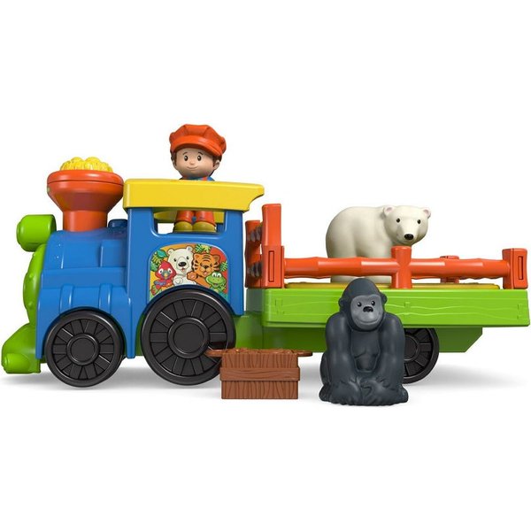 Wyrusz w drogę z konduktorem i jego przyjaciółmi - misiem polarnym i gorylem. Dla zwierzaków przygotowano specjalny wagon, z którego mogą podziwiać całą okolicę, a konduktor ma swoje miejsce na przedzie lokomotywy i stamtąd kieruje całym pociągiem. Gdy już wszyscy będą gotowi do podróży, naciśnij na komin lokomotywy, który zagwiżdże i da sygnał do odjazdu. Podczas jazdy pociągu słychać odgłosy zwierzątek i melodyjki. Ale to nie wszystko! Po naciśnięciu platformy usłyszysz wesołą piosenkę, która zachęci do wspólnego śpiewania.