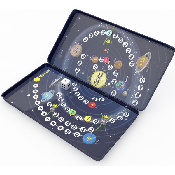 Podróżna gra kosmiczna misja w którą zagrać może jednocześnie od 2 do 4 czterech graczy. Każda osoba posiada swój własny statek kosmiczny. Grę rozpoczyna najmłodszy z rozgrywających. Rzuca kostką i przesuwa się o tyle pól ile ona wskazuje. Jeżeli stanie na planecie - przesuwa się o daną ilość pól do przodu lub do tyłu. Uwaga na satelity! Ona powoduje, ze tracimy kolejkę. Jednak jest jeszcze jedna pułapka! Gdy staniemy na polu na którym już ktoś stoi - przesuwany się z powrotem na start. Wygrywa ten kto pierwszy stanie na słońcu lub ziemi.
