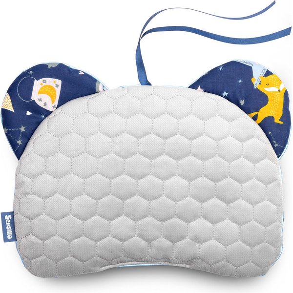 Miękka poduszeczka marki Sensillo wykonana w 100% z bawełny oraz mięciutkiego velvet będzie idealnym podparciem dla główki maluszka. Unikalny kształt czyni ją nie tylko poduszeczką do spania, ale także przytulanką, czy ozdobą dziecięcego pokoju. Wypełnienie to antyalergiczne włókna silikonowe, które są bardzo miękkie ale nie powodują efektu zapadania się. Idealna w podróż czy w domu.