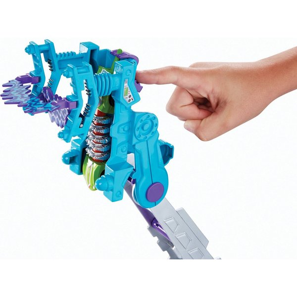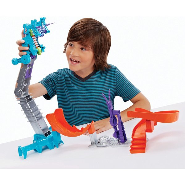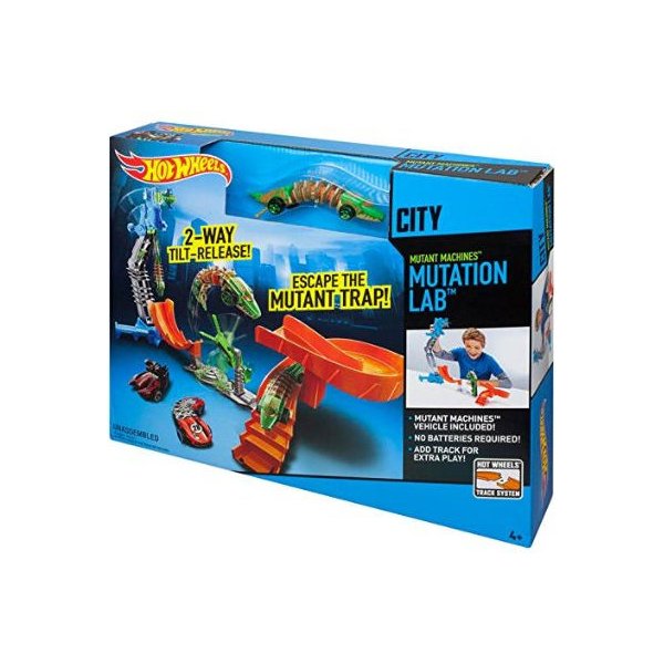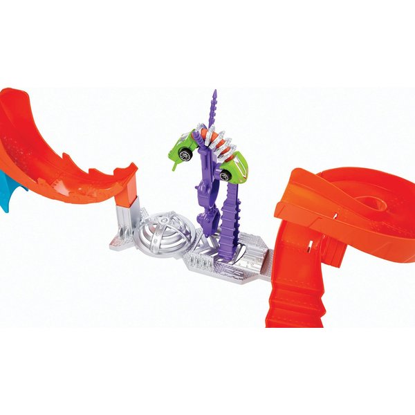 Zestaw zawiera elementy toru (m.in. wyrzutnia, ruchome szczypce przechwytujące, zjeżdżalnia, spadzisty zjazd), które można łączyć z innymi zestawami z serii Hot Wheels, a także jeden zmutowany samochodzik Hot Wheels Mutant.