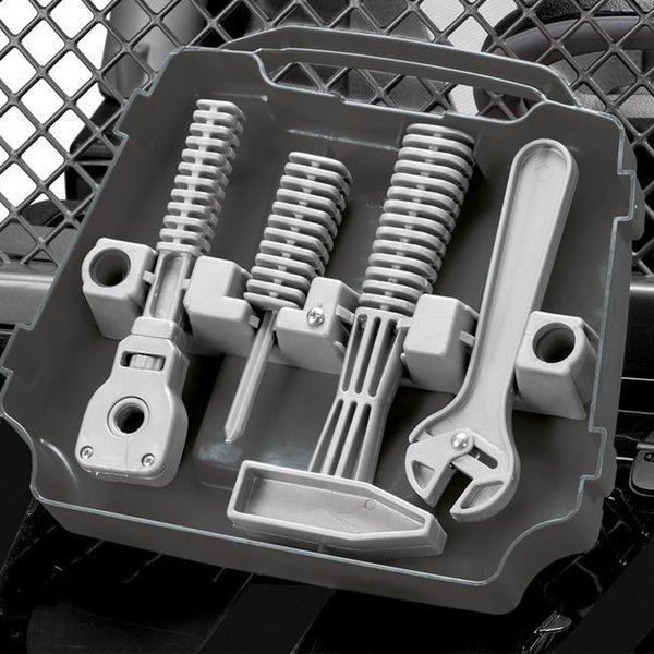 • Skrzynka z zabawkowymi narzędziami na przodzie maski,