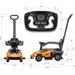 Interaktywna kierownica z klaksonem i wesołymi melodiami to dodatkowa atrakcja. Pojazd posiada koła z możliwością skrętu, którymi możesz sterować za pomocą rączki. Dla bezpieczeństwa mniejszych dzieci przewidziano barierki z możliwością ich demontażu. Rączkę również możesz usunąć, jeśli nie będzie już potrzebna. W tylnej części pojazdu jest umieszczone specjalne zabezpieczenie, zapobiegające wywróceniu pojazdu w przypadku kiedy dziecko będzie chciało szybciej jeździć. Koła wykonane z trwałego termoplastycznego tworzywa - PCV - umieszczone zostały na stalowych osiach, co przekłada się na ich większą trwałość i stabilność całej konstrukcji. Jeździk może być używany na każdej nawierzchni, także w domu bez obaw o jej zarysowanie. Komfortową podróż małemu kierowcy gwarantuje wyprofilowane i miękkie siedzisko.