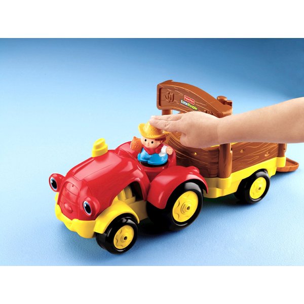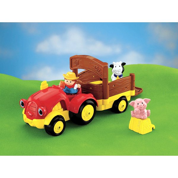 Kolorowy i wesoły traktor wraz z kierowcą i zwierzętami umieszczonymi na przyczepie to doskonała zabawa dla każdego maluszka.