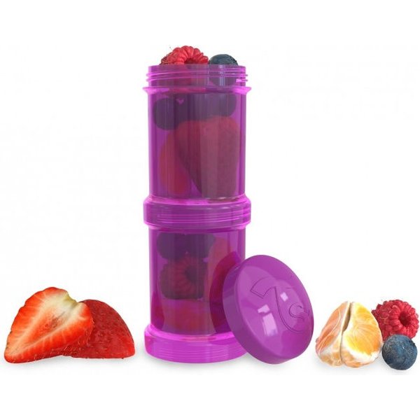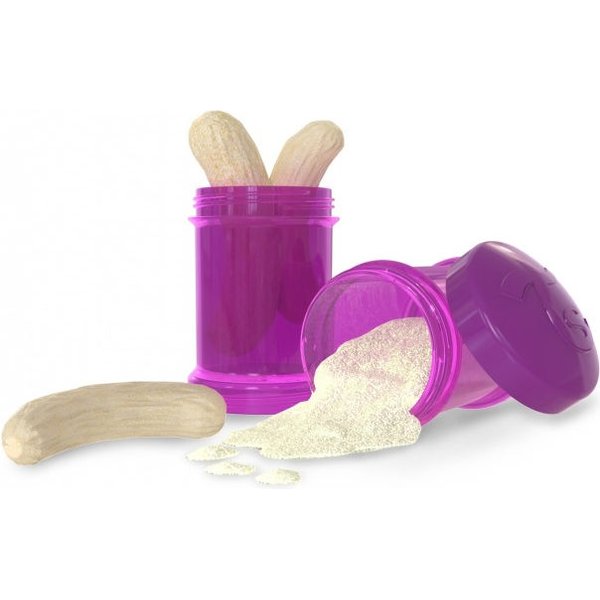 Specjalne pojemniczki do przechowywania mleka w proszku lub kaszki czy owoce o pojemności 100ml. Ilość pokarmu bardzo łatwo odmierzyć, a jego wielkość dopasowana jest do szyjki buteleczki od Twistshake, dzięki czemu pokarm łatwo przesypać lub przelać. Budowa pojemników pozwala na ich łączenie, dzięki czemu możemy przygotować większą ilości pokarmu.
