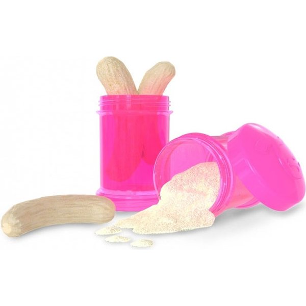 Specjalne pojemniczki do przechowywania mleka w proszku lub kaszki czy owoce o pojemności 100ml. Ilość pokarmu bardzo łatwo odmierzyć, a jego wielkość dopasowana jest do szyjki buteleczki od Twistshake, dzięki czemu pokarm łatwo przesypać lub przelać. Budowa pojemników pozwala na ich łączenie, dzięki czemu możemy przygotować większą ilości pokarmu.