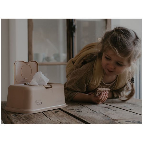 To niezwykle praktyczne akcesorium ułatwi Ci codzienną pielęgnację Twojego dziecka. Możesz w nim przechowywać nawilżane chusteczki bez obaw i ich wyschnięcie. Szczelny pojemnik pomieści standardowe opakowanie nawilżanych chusteczek dla niemowląt. Długo utrzymuje ich świeżość i jest bardzo łatwy w obsłudze. Za pomocą jednego kliknięcia możesz go otworzyć, wyjąć chusteczki i szybko zamknąć. Elastyczne dno uławia włożenie chusteczek.