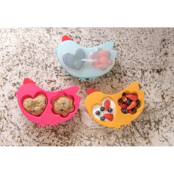 Silikonowy pojemnik pomieści pyszne potrawy i przekąski dla naszych pociech. Będzie idealną foremką do lodów, jajek w koszulce, galaretki, muffinek i wiele innych pyszności. Pojemnik wykonany został z bezpiecznego silikonu spożywczego, jedna komora jest w kształcie serduszka, druga to kwiatek. Nadaje się nawet do piekarnika. Do zestawu została dołączona praktyczna silikonowa pokrywka.