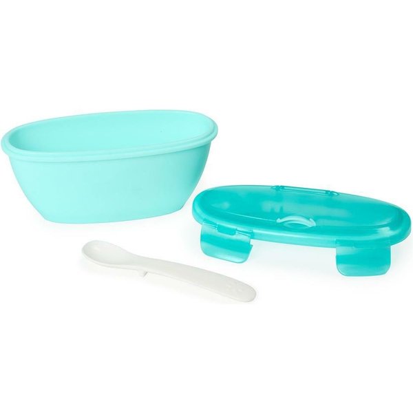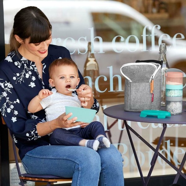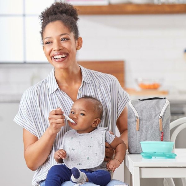 Nadeszła pora pierwszych posiłków? Zadbaj o właściwe przechowywanie pokarmu w domu i podróży z pojemnikiem z łyżeczką Easy-Serve marki Skip Hop.