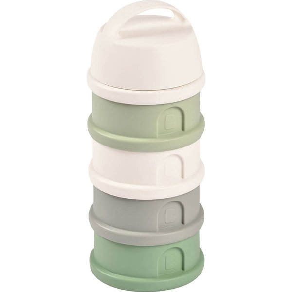 Model ten składa się z 4 osobnych pojemniczków o łącznej pojemności 440 ml. Każda z komór pomieści do 11 dawek mleka w proszku. Pojemniki są odpowiednio szerokie, łatwe do napełniania, mycia i dezynfekcji (możliwa jest sterylizacja). Możesz używać ich osobno lub nakręcić jeden na drugi. W komplecie znajdziesz dodatkową nakrętkę z wąskim otworem, ułatwiającą przesypywanie zawartości do butelki. Każda z komór możesz także wykorzystać do przechowywania przekąsek dla starszaka. Pojemniki wykonano z bezpiecznego dla maluszków tworzywa pozbawionego BPA we Francji, zużywając o o 28% plastiku mniej niż w starszych modelach i przy 20% niższej emisji CO2.