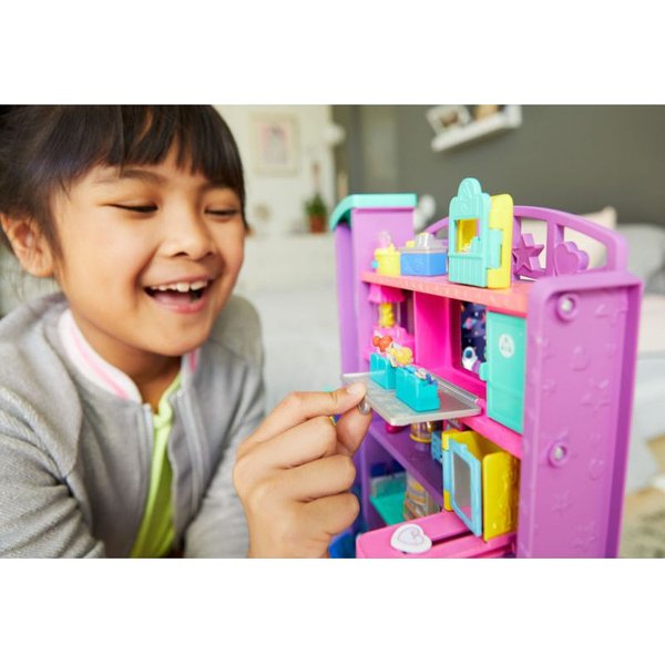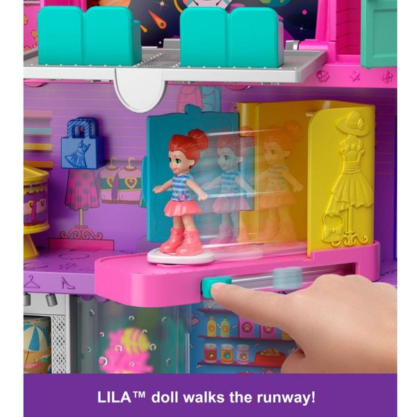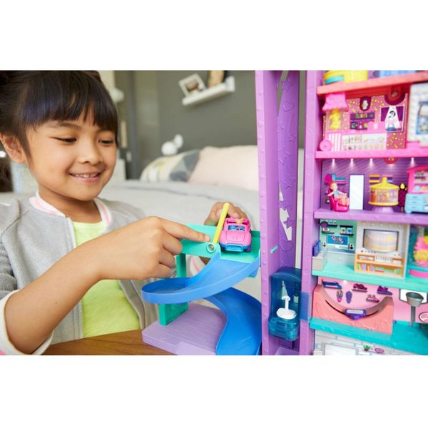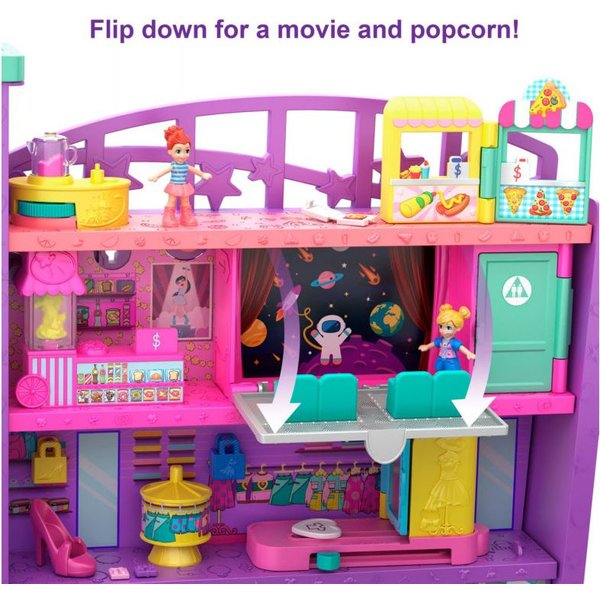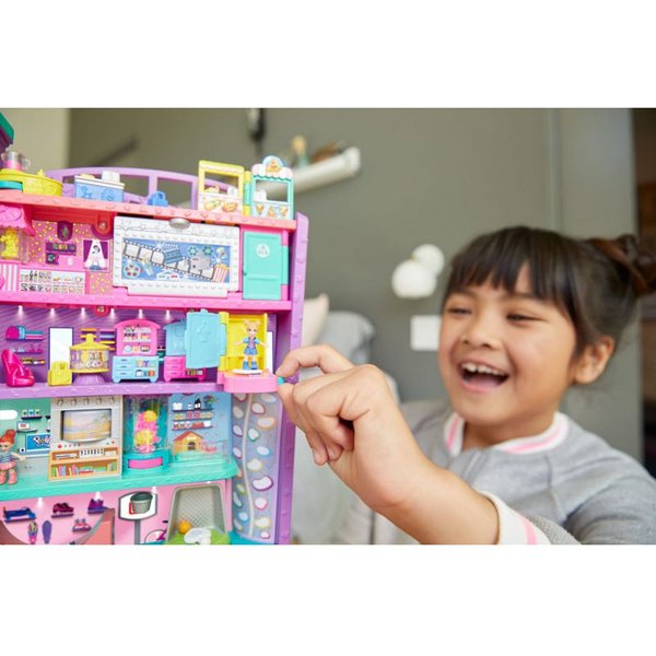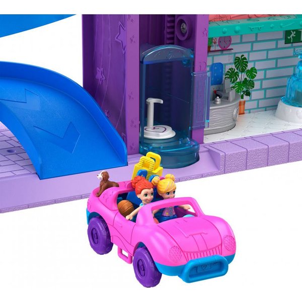 Centrum handlowe od Polly Pocket posiada aż 6 poziomów, które kryją wiele ciekawych atrakcji! Dodatkowo zestaw posiada parking z samochodem! Dzięki stosunkowo niewielkim rozmiarom możesz go zabrać gdziekolwiek chcesz!