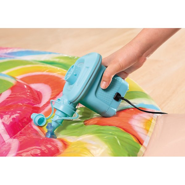 Niezastąpiona w domu oraz podczas wyjazdów - pompka elektryczna Quick-Fill marki Intex pozwoli Ci szybko napełnić powietrzem dowolne dmuchane akcesorium lub materac zarówno po podłączeniu do gniazdka, jak i samochodowej zapalniczki.