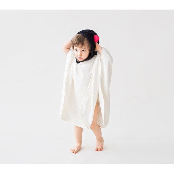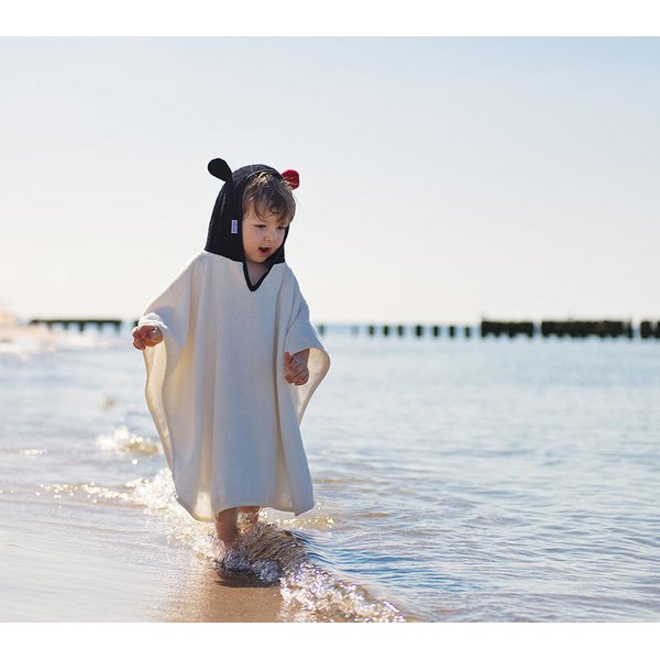 Jest wielofunkcyjny, może zostać wykorzystany jako poncho z kapturem na plaży lub ręcznik kąpielowy w domu. Dodatkowo uszka na kapturze dodają mu uroku!