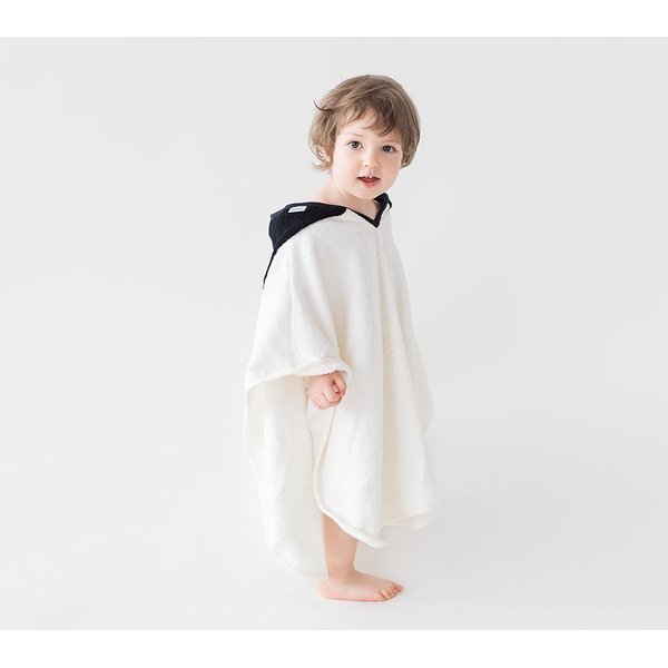Ręcznik do kąpieli poncho jest wykonany z delikatnego bambusowego materiału typu frotte, który nie podrażnia delikatnej skóry dziecka i doskonale chłonie wodę. Szeroki otwór na głowę pozwoli łatwo i bezboleśnie założyć i ściągnąć okrycie.