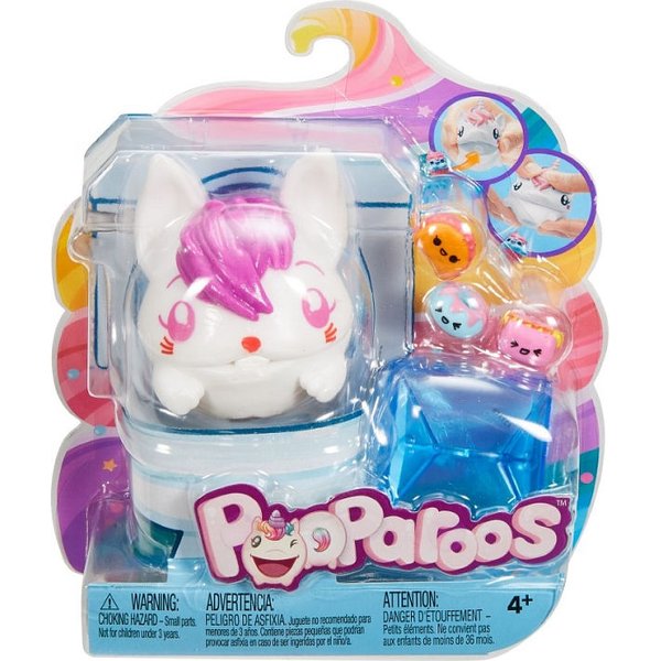 Pooparoos to wesołe i mięciutkie zwierzątka, które należy karmić różnymi pysznymi smakołykami. Po zjedzeniu pyszności przez zwierzątko naciśnij na niego, a smakołyk znów będzie gotowy do zjedzenia! Zabawy nie ma końca! Zwierzątko można karmić wielokrotnie. Zbierz je wszystkie!