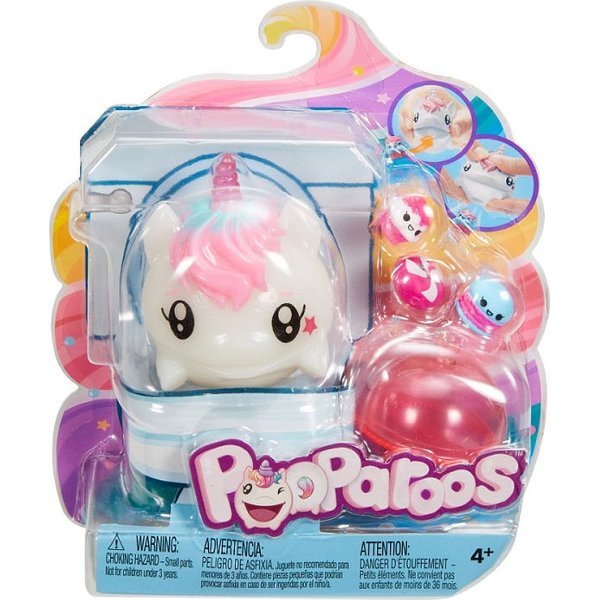 Pooparoos to wesołe i mięciutkie zwierzątka, które należy karmić różnymi pysznymi smakołykami. Po zjedzeniu pyszności przez zwierzątko naciśnij na niego, a smakołyk znów będzie gotowy do zjedzenia! Zabawy nie ma końca! Zwierzątko można karmić wielokrotnie. Zbierz je wszystkie!